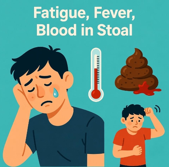 Bloody stools, high feverInvasive bacteriaMedical review for stool culture ± antibiotics