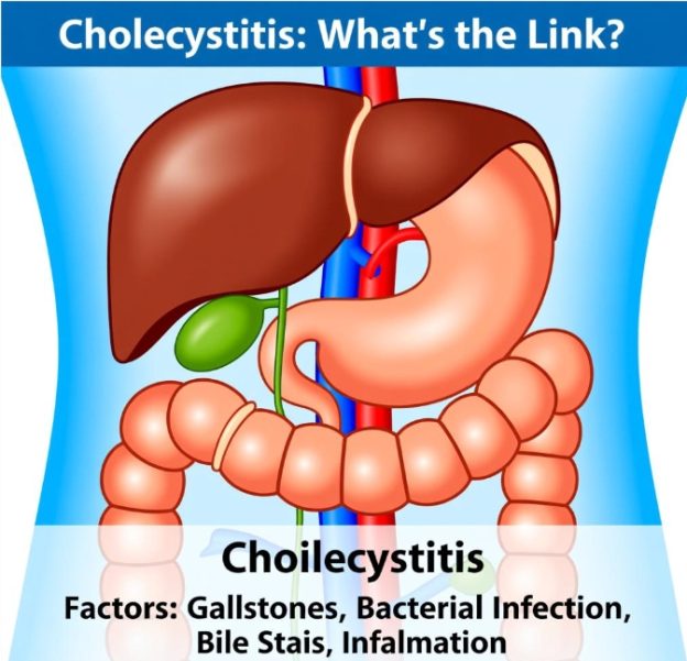 Tender hepatomegalyHot, painful edge, positive Murphy