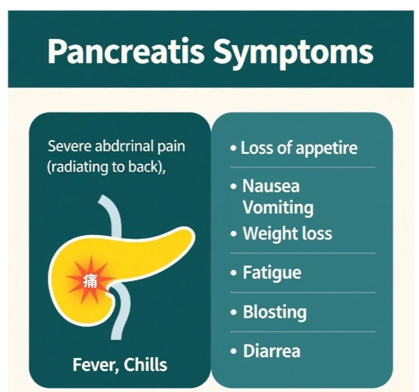 ChronicPost-prandial upper pain, steatorrhoea, weight ↓Pain lessens when leaning forward, oily film on stoolJaundice, sudden severe pain (complication)