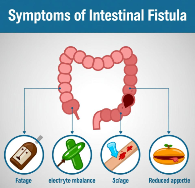 An intestinal fistula is an abnormal passage between the bowel and another organ or the skin, allowing digestive fluid, food residue, or stool to leak, producing a spectrum of clinical manifestations.