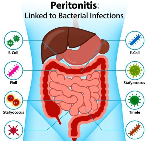 Peritonitis is an acute inflammation of the peritoneum triggered by bacterial, chemical or physical insults. It progresses rapidly and may become life-threatening within hours. Key manifestations include: