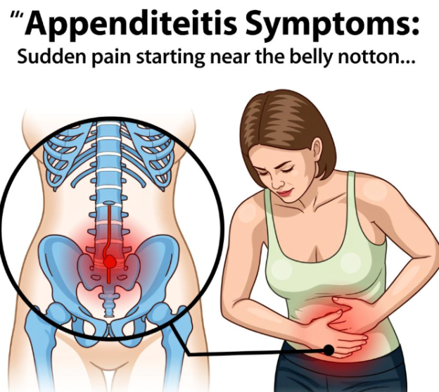 Migrating RLQ painUmbilical → McBurney point, movement/cough ↑