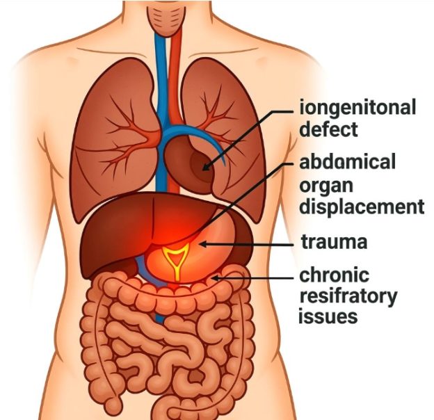 Diaphragmatic hernia—congenital or acquired—occurs when abdominal organs herniate through a defect in the diaphragm into the chest. Clinical expression depends on patient age, defect size, and the amount of herniated viscera.