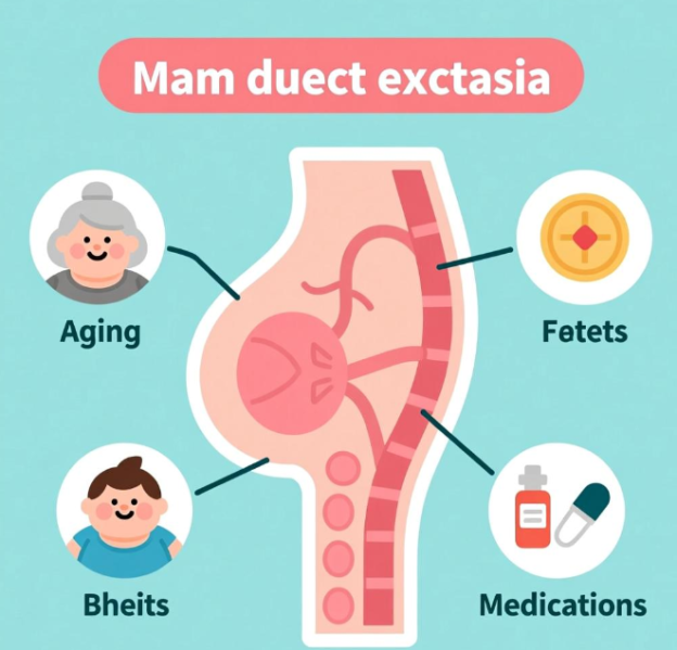 Mammary duct ectasia happens when a milk duct beneath the nipple widens and fills with thick, sticky fluid. It is most common in women aged 40–60 and can mimic more serious breast problems, so knowing its typical signs is helpful.